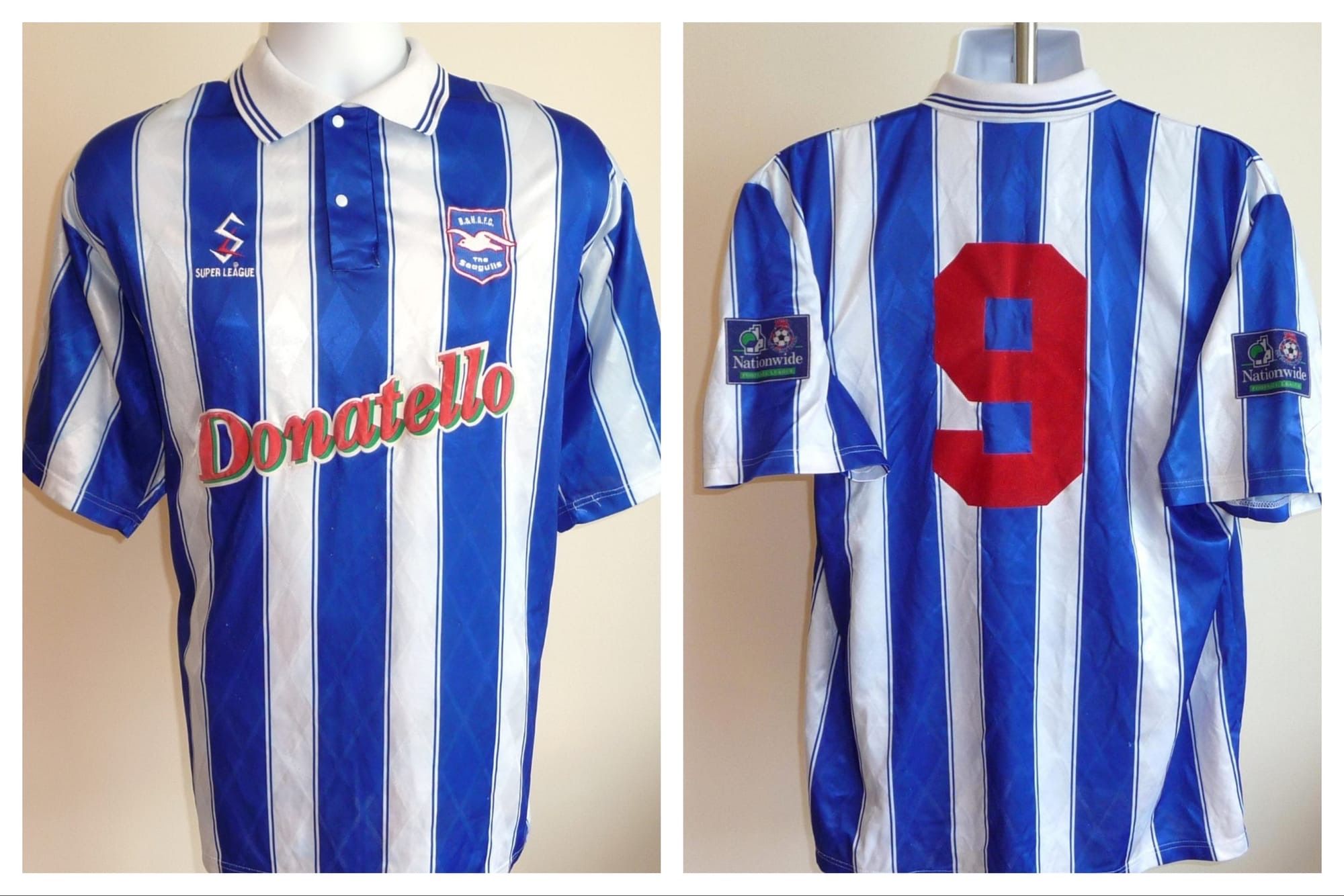 You can tell it is from the very beginning of the season as the Sandtex logo is printed onto a white flock panel that has been heat applied to the shirt. This shirt was made available in limited numbers at the very start of the 1997/8 season. After the beginning of the season the shirts had the Sandtex logo screen printed in red direct to the shirt. Anyone who bought this version was offered a correctly printed shirt free of charge once they became available.