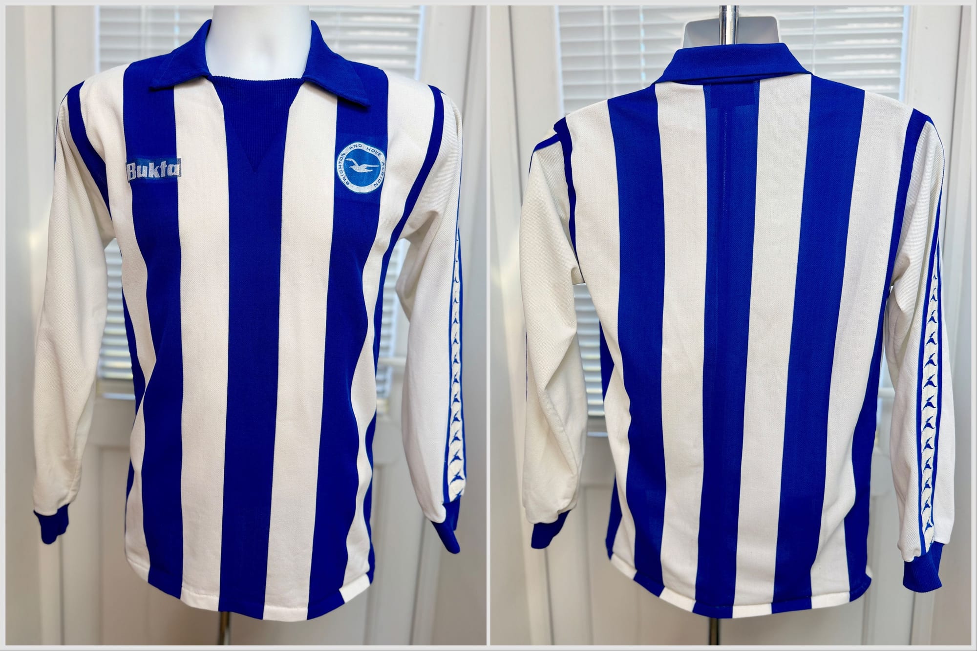 This is a match shirt wth a difference. On the normal match shirts there was a white panel imprinted within the stripes on the back for the number to go. In the official replica shirts the back was all stripes. This shirt has a white patch applied over the top of the stripes and then the number applied. This could be a reserve team shirt as it doesn't have any league patches on the sleeves.